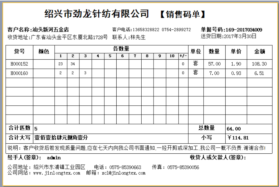 纺织布匹辅料发货出货送货单打印软件 (广州中大布料市场专业销售单据提供者)